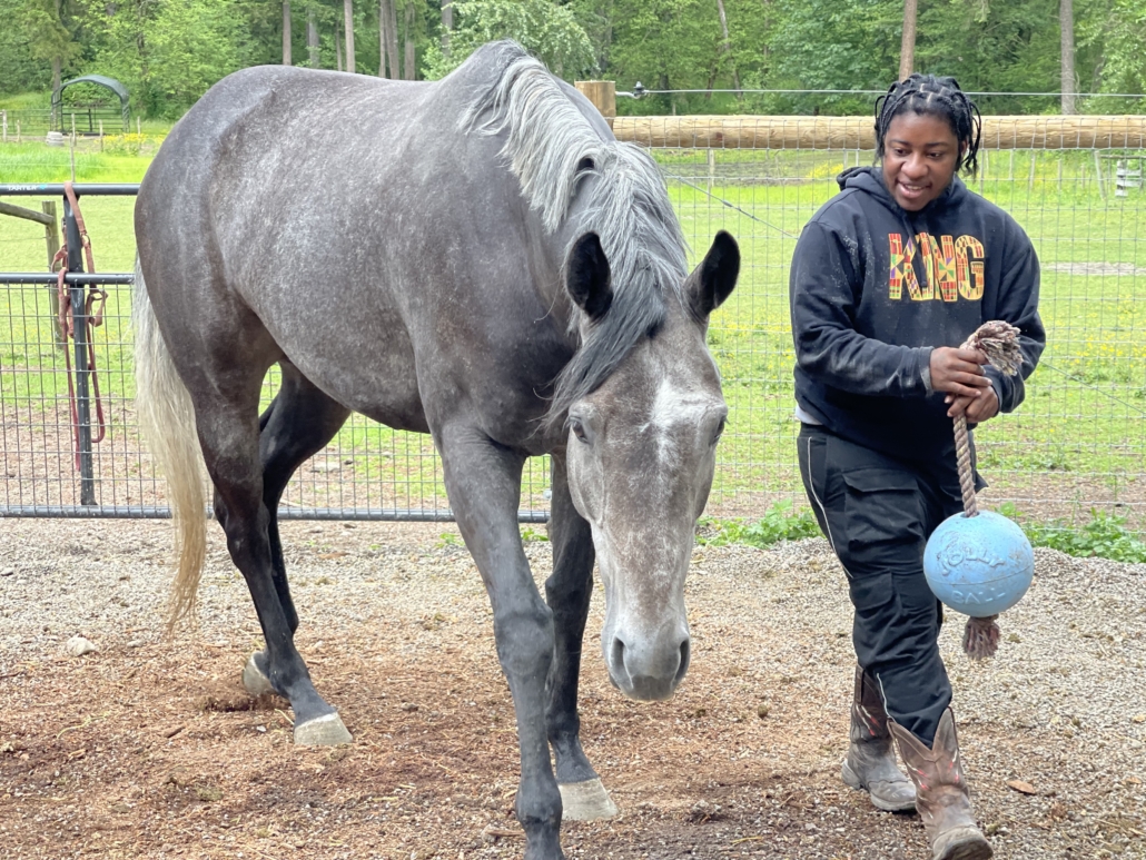 Meet Simmie. Simmie is a silver and black horse from Seattle Washington. Beloved pet to Jahrie, a BA Business student, Jahrie recalls his favorite memory of Simmie from when he first met her, “We had an instant connection.”