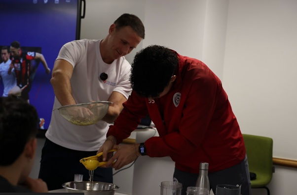 The session was designed to be practical, accessible, and immediately applicable for daily athlete life. Students engaged in making fresh ginger shots, learning how natural anti‑inflammatory ingredients support recovery and immunity.